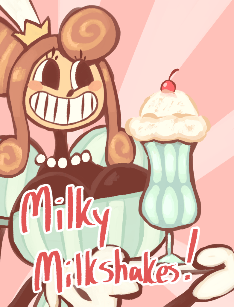 Honeybunns runs a restaurant in the Gluttony area of the Pactrealms, as you’ve seen from the waiter/waitress enemy TFs we showed a while ago. These are some of the posters you’ll see in the area. Inky also wants to make some unique enemies like cardboard-cutouts of Honeybunns who attack you as you wander the streets of her realm.