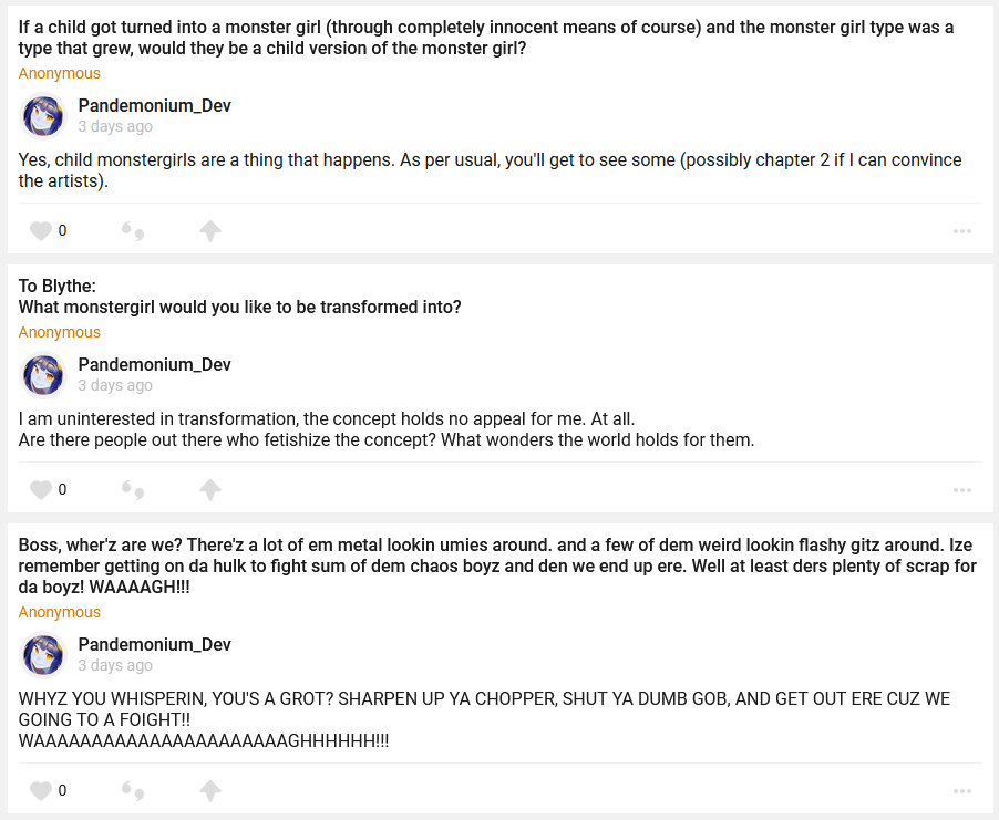 Chicken and Koops have been putting together the new concepts for chapter 1. We’ve got a month at least of new patron bonus stuff, and this first week it’ll be the new werecat enemy!