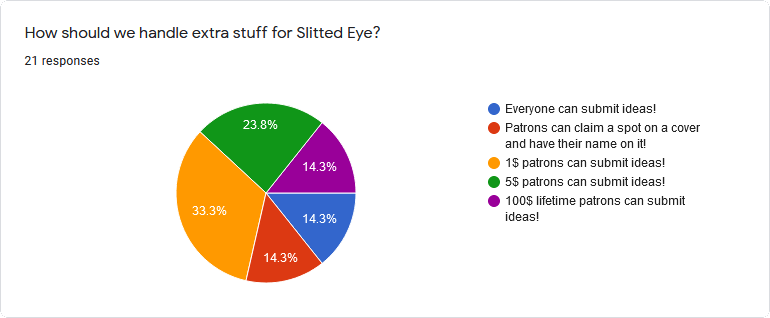 Last week I asked the patron pals what we should do concerning Slitted Eye suggestions and the UI Update. Well here’s your damn results.
