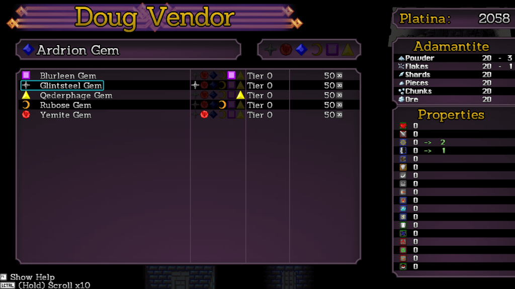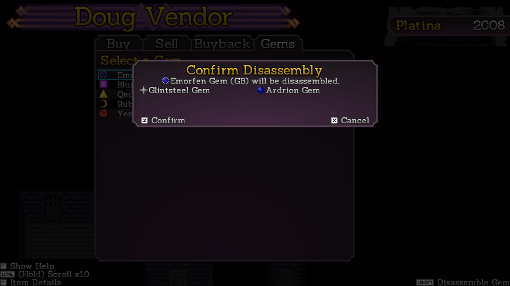You can also now disassemble gems, returning the original gems but losing any adamantite and money spent in the process. This wasn’t in the old UI, so I had to slap together the code for it. It works like a charm.