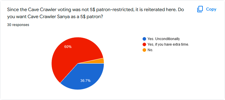 $5+ patrons got to vote on our targets for the next big release. Discussion is below, but first, the cave crawler.