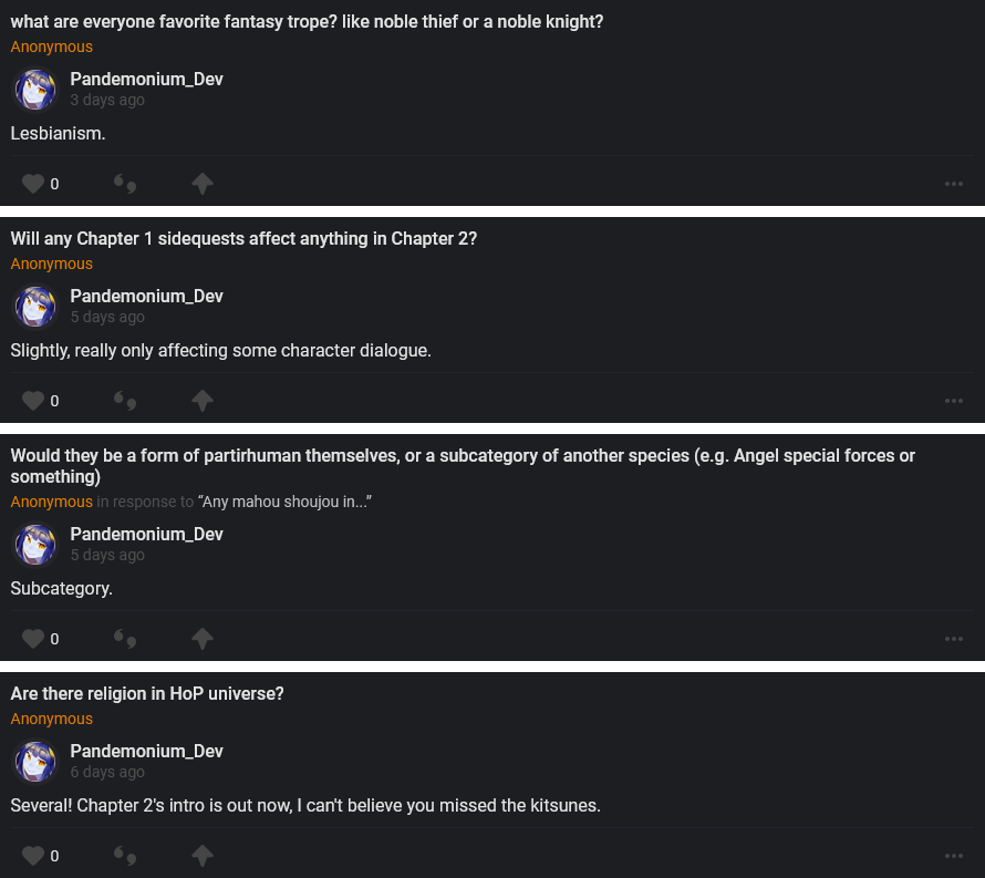 Because TheChicMonster isn’t actually a Bottled Starlight team member, development expenses aren’t going under the patreon’s umbrella. Don’t worry, work on Pandemonium is continuing while this project is being made because those wacky artists are always behind.