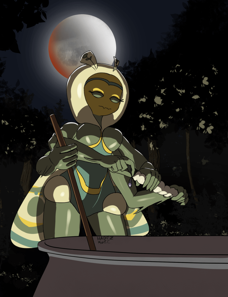 And lastly, possibly Hadez Muze’s best piece yet, it’s Sage from Monoceros! Moths have such cool designs in real life, it’s a shame people don’t draw them more.