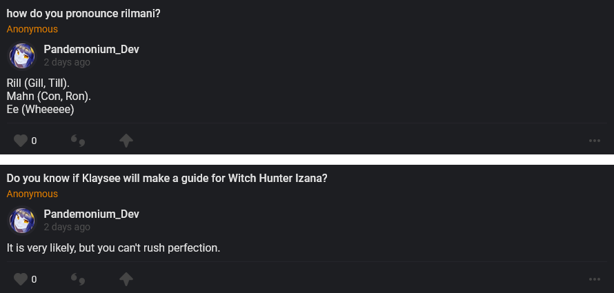1: Witch Hunter Izana support. Bugfixes and QoL stuff. That will be most of this week.