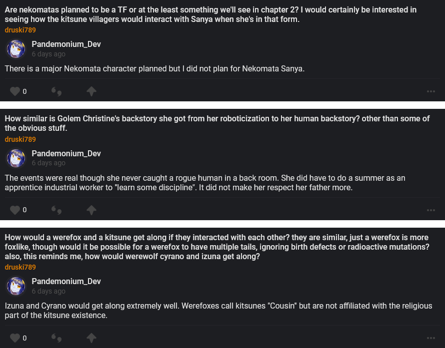 Heyo, my name’s Sigrid Vjeol, I’m a good ‘friend’ and colleague of Salty, she’s just given me permission to spruke the demo for my new game ‘GutterBlight’ a tf rpg where you explore a proto Victorian setting whilst trying to avoid being tf’d by ‘mysterious forces’ it’s a lot like runes in that it’s going to be story heavy and take place in a unique world, but also has a lot of it’s own stuff going on, like a special sub stories exploring what happens to folks post tf