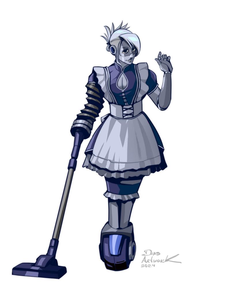 What if Mei got turned into a secrebot? I’ll tell you what, it’s this piece by Dias and commissioned by Justinkombat. This does imply that as she sucks up dust, her chest will swell up to store it. Think about that, think about emptying a dust bag by opening a valve and pressing on a robot’s tits.