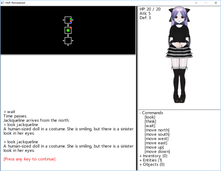 Koops joined the team sometime around this time, I forgot the exact date. For the Chapter 5 Electrosprite quest, I had developed a simple text adventure engine. This was a throwback to the origins of the Pandemonium projects, the quest involves Christine playing a primitive game where I basically make fun of the interface and graphics (from a place of love!). Around that point I wanted to make the game that would become String Tyrant, and I wanted it to be both a smaller project and also a way for Koops to get into the development patterns. Plus, having a single artist work on something helps cohere the style (though Chicken and Hund would eventually contribute anyway).