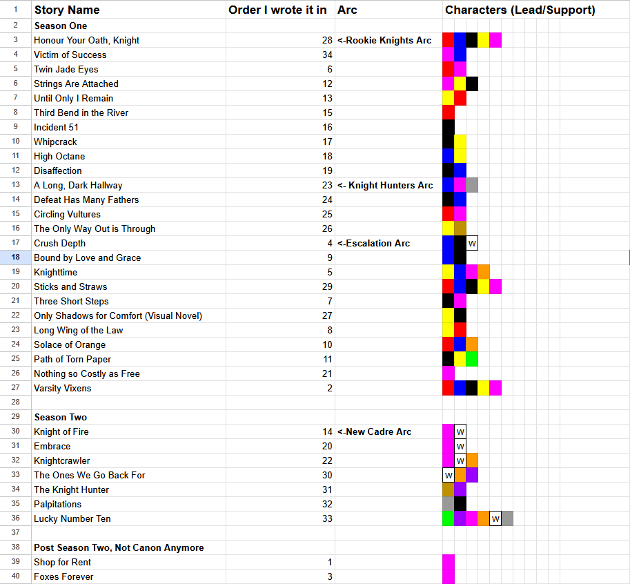Yeah if you look at the list of stories it’s a little obvious what happened. Varsity Vixens is a fun sexy romp and served as the pilot episode for an entire series which I then started writing basically backwards. Or, not quite backwards. As another “Fuck it” moment, here’s the order of the series versus the order I wrote it in.