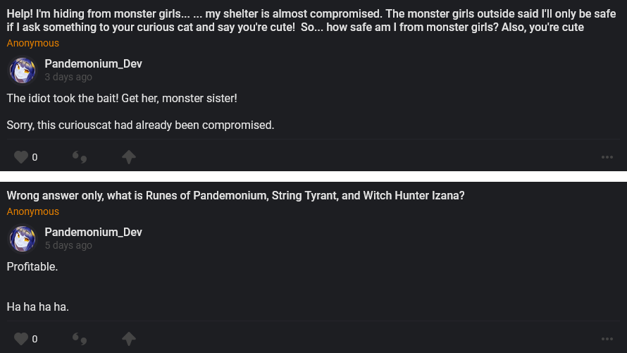 As for when to expect this, it will be posted when it is ready. February is an extremely busy month for Chic, so I don’t know when. It will be posted on Steam, Itch.io, and here whenever it is ready.
