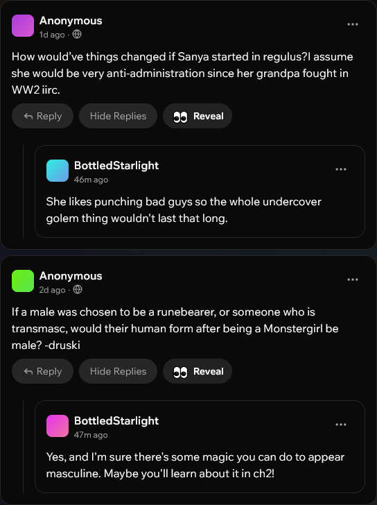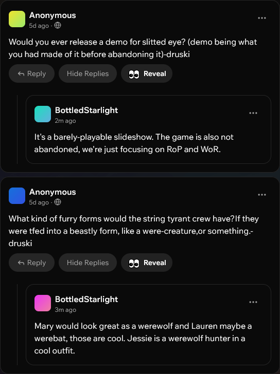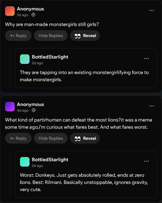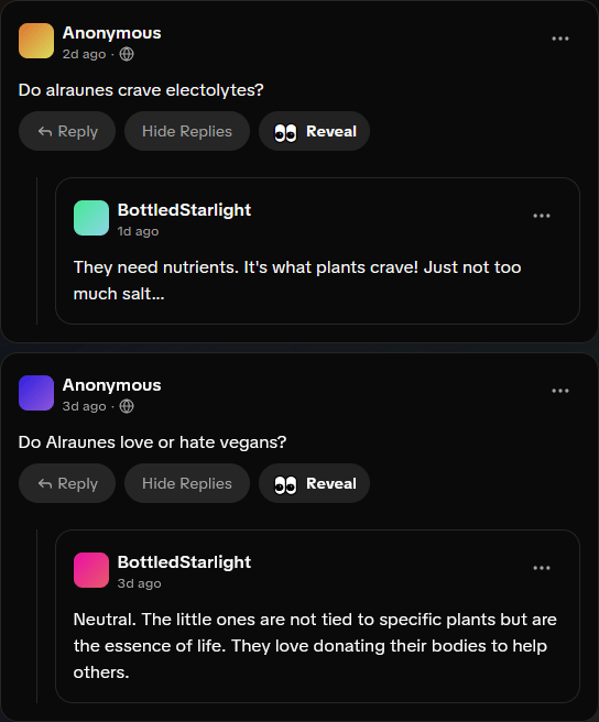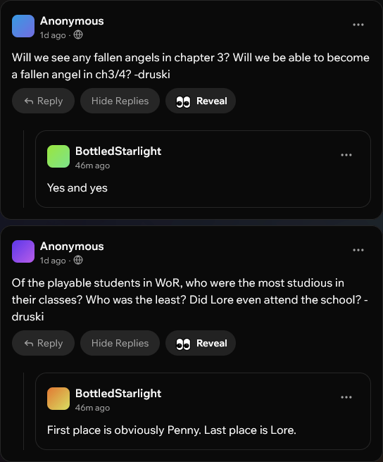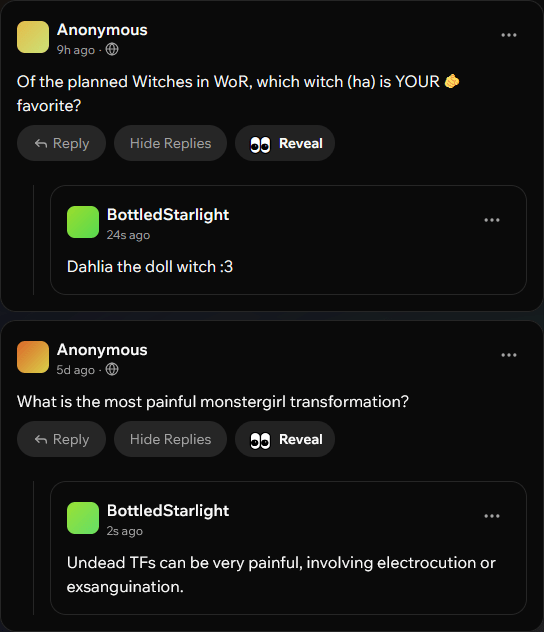 “Hey Salty what’s with the ‘Reveal’ button there?” It apparently lets you see traces of who sent something anonymously, a feature I honestly don’t want because you should be able to ask questions anonymously! Get rid of that!