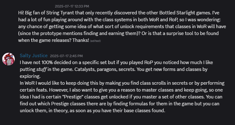 I’m overhauling how the class system and event system are going to work based on player feedback from the prototype. I think you’re going to like it a lot. I may share some of these design ideas later in the process, but for now, hooray!