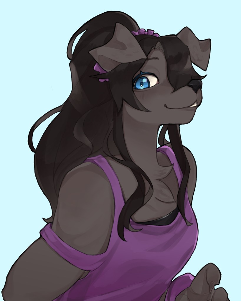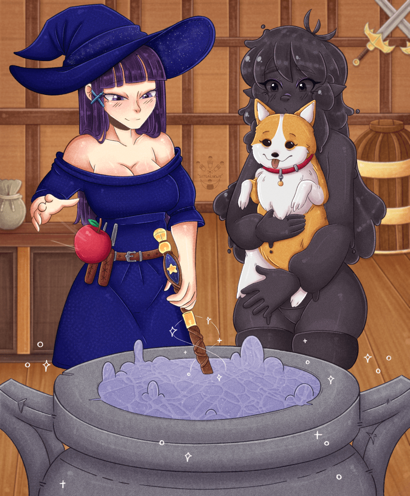 by https://bsky.app/profile/kirilewd.bsky.social. There’s a NSFW version of this but Dot isn’t wearing a bikini in that one and let me tell you that pup is CAKED so I can’t show it here.