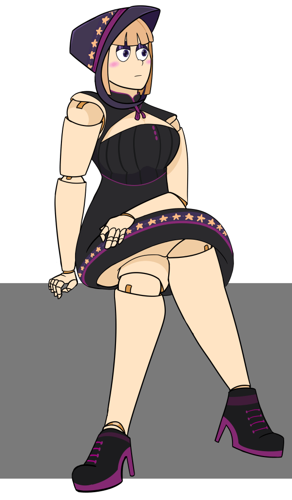 As an example, here’s Chris after the transformation in the restaurant. I asked Inky to make a version for both, for demonstration purposes. The game does have a finite budget, and adding more costumes does take artist time and coding time (plus the possibility of bugs) so it’s not trivial to do this. However, if the audience feels really strongly about it, we may change course. Our current plan was to do a sometimes-TG, where masculine characters (not just Chris, there are still the sponsored characters, and some NPCs!) are TG’d depending on the form. In the dolls case (and the moon maidens) it was always feminizing but for the restaurant, a masculine variant is conceivable.