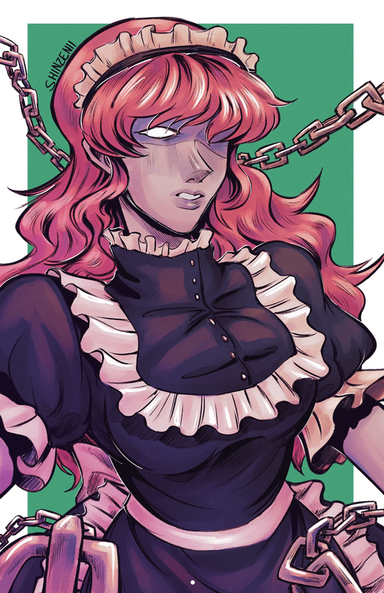 By Xandra. How do you even explain this one? A ghost maid from another world dressing up for a holiday that doesn’t exist on her planet, but she’s mixing together the reindeer part and the christmas tree part and the ugly sweater part?