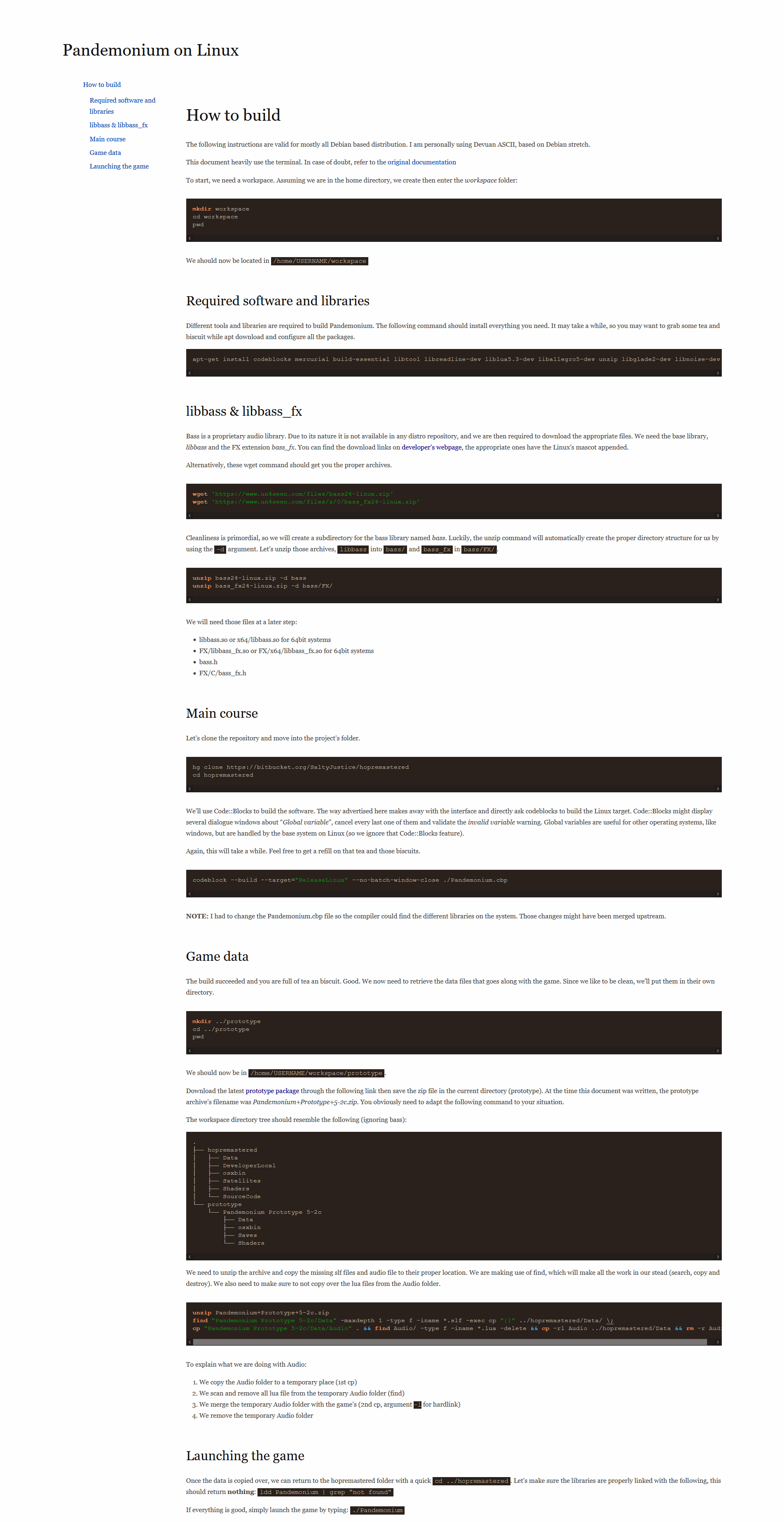 If you are a Linux user, you will need to compile the game yourself. Salty only has a Linux Mint installation, and attempts to make a cross-Linux version of the game keep failing.