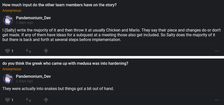 I am balancing the last area of Monoceros and the final boss. After that it’s on to the sidequests of the game. Chicken got sick, Koops was making Easter stuff for charity, Dmitri was helping (more on that below) and Urimas is making sprites for Monoceros.