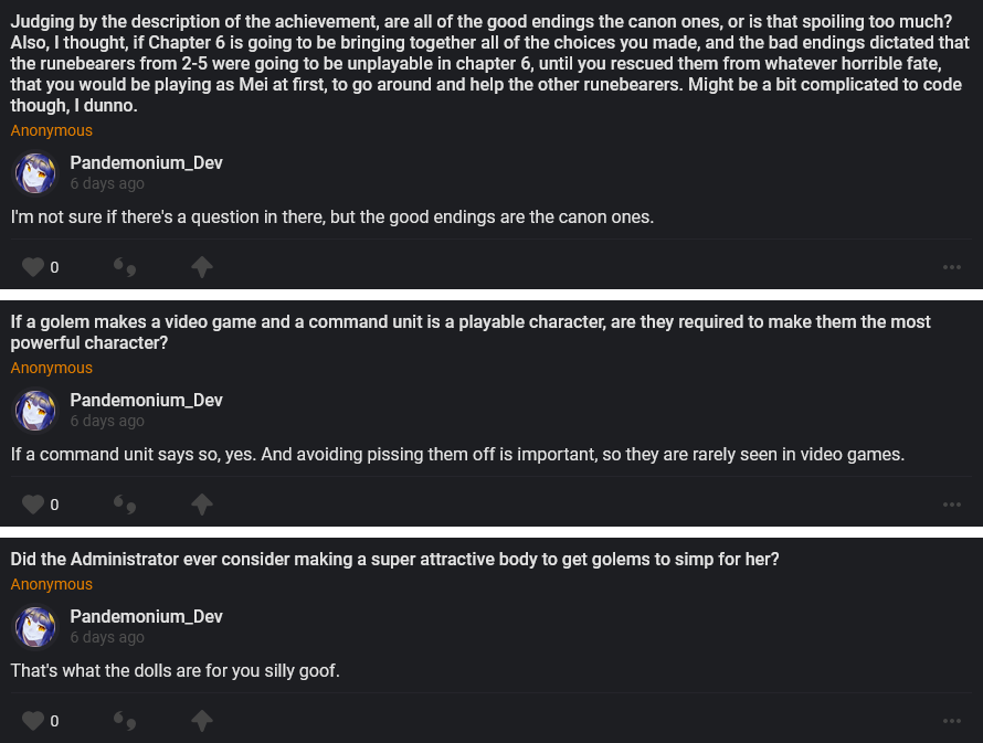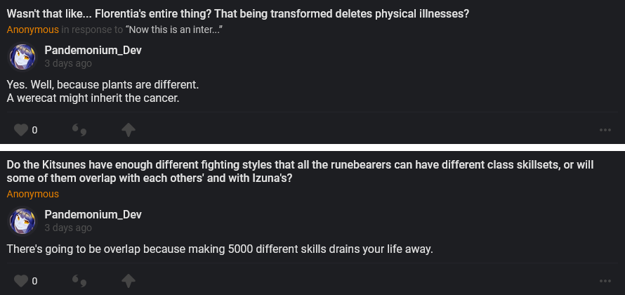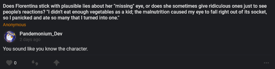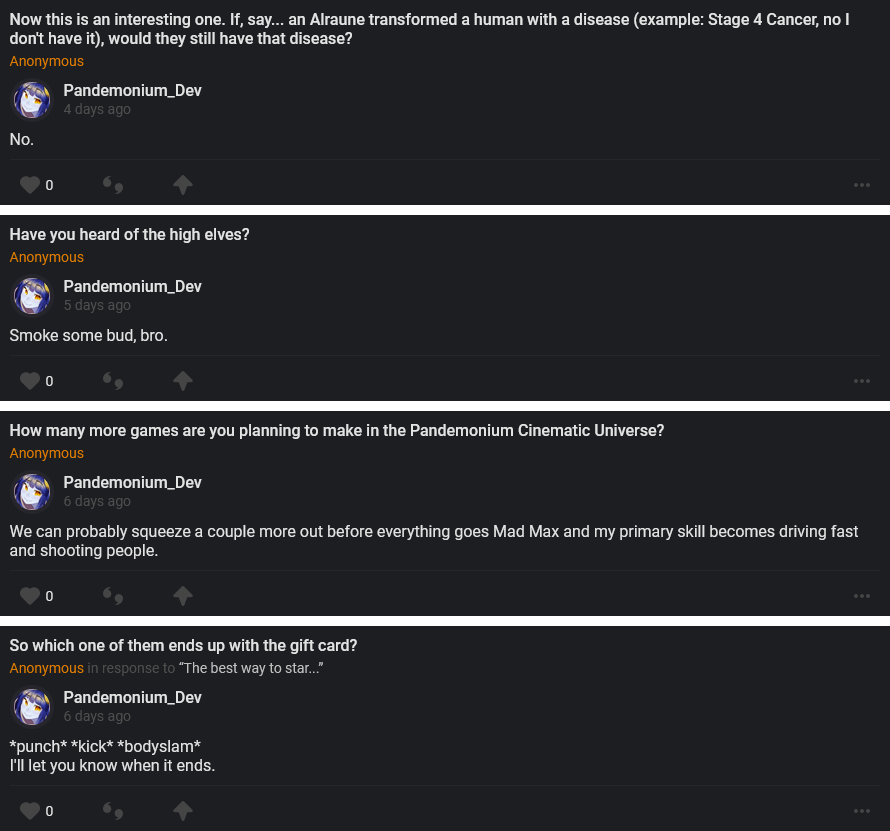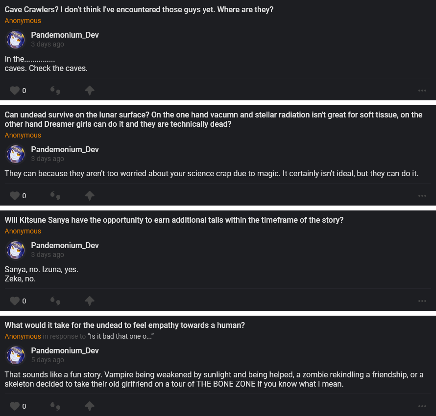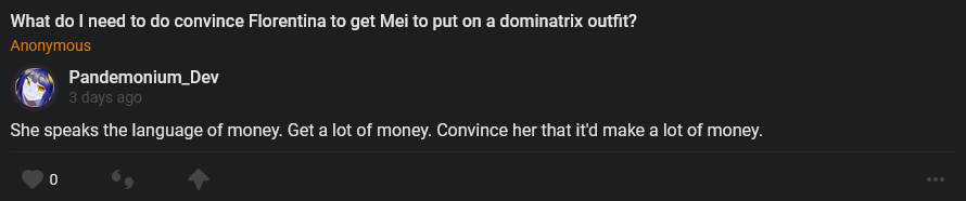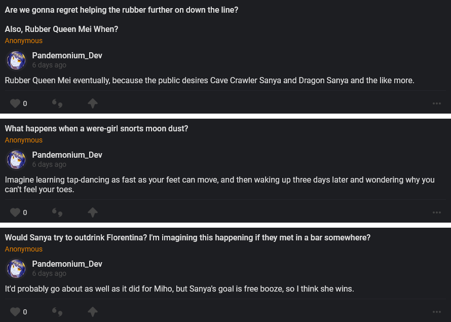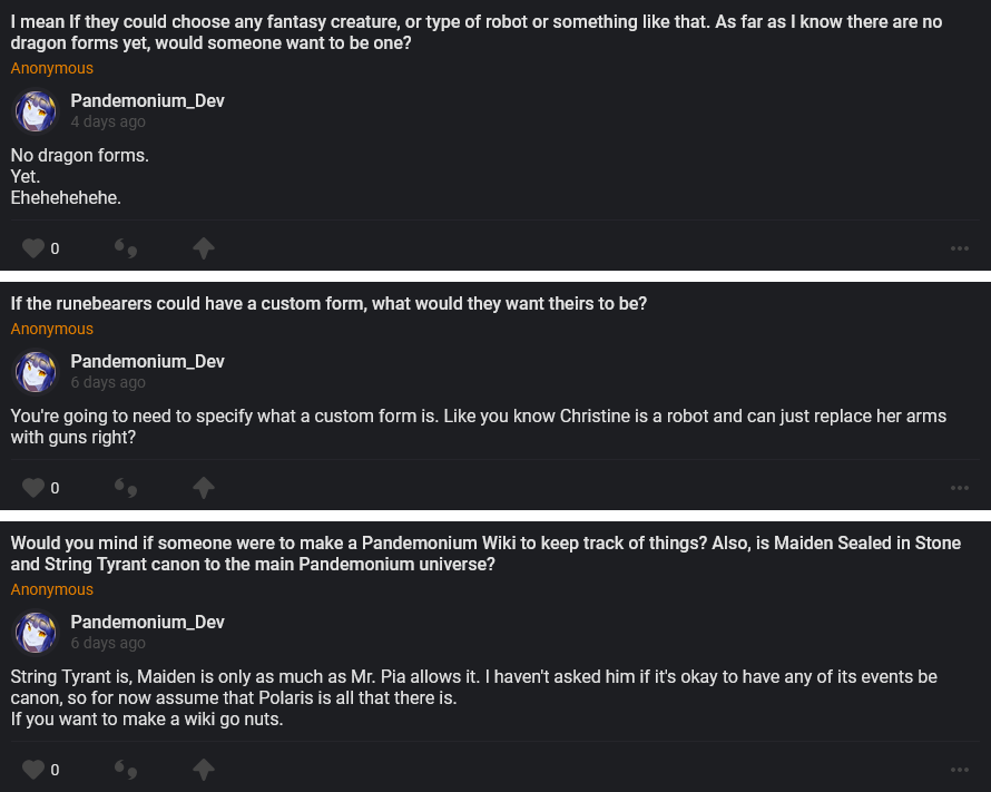 Because TheChicMonster isn’t actually a Bottled Starlight team member, development expenses aren’t going under the patreon’s umbrella. Don’t worry, work on Pandemonium is continuing while this project is being made because those wacky artists are always behind.