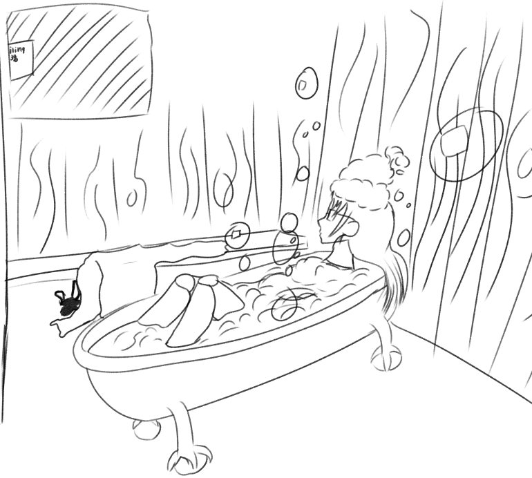 I don’t know if that second one counts as fan art because it’s not of the game, it’s nominally of… me? Koops made a doll programmer called Sweet Justice and that’s supposed to be me, taking a bath.