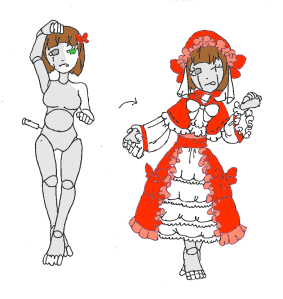 Next up, we have a series of the best thing in the world: Doll Transformations! Christine got turned into a doll, and then decided to help her “friends” get the same treatment. My fave is Lotta because god I love maids, but god damn do Mei and Sanya’s outfits get me.