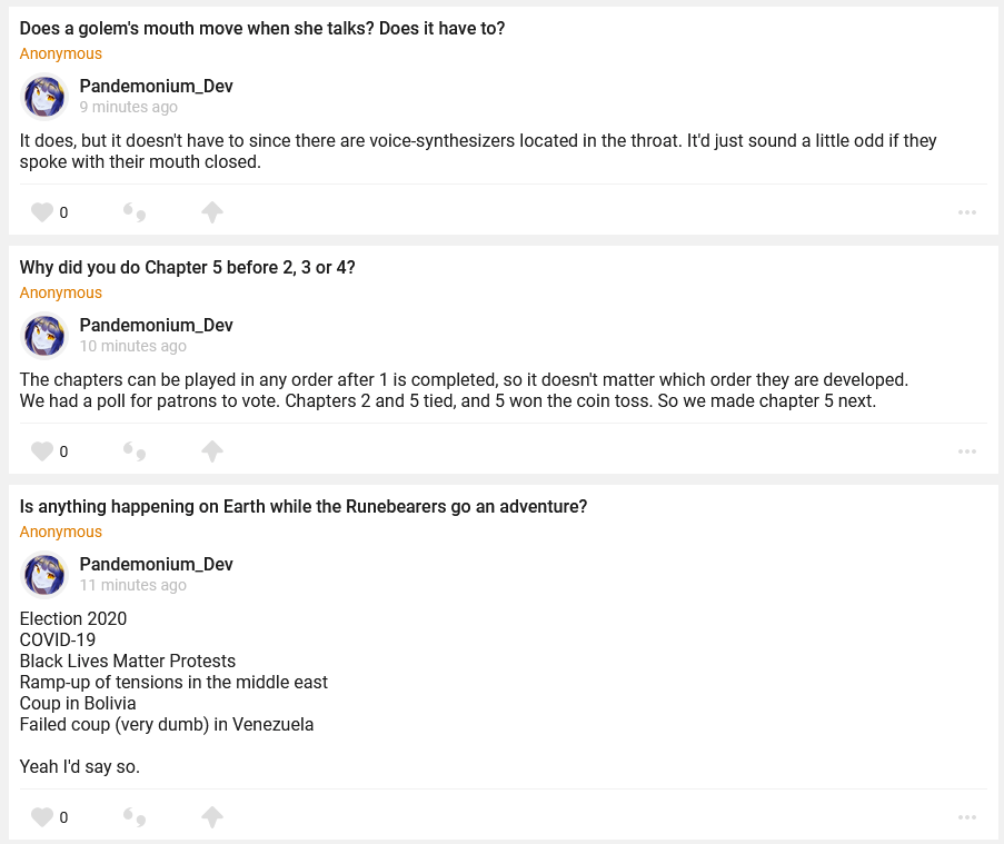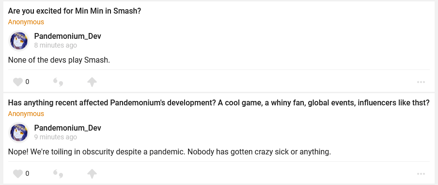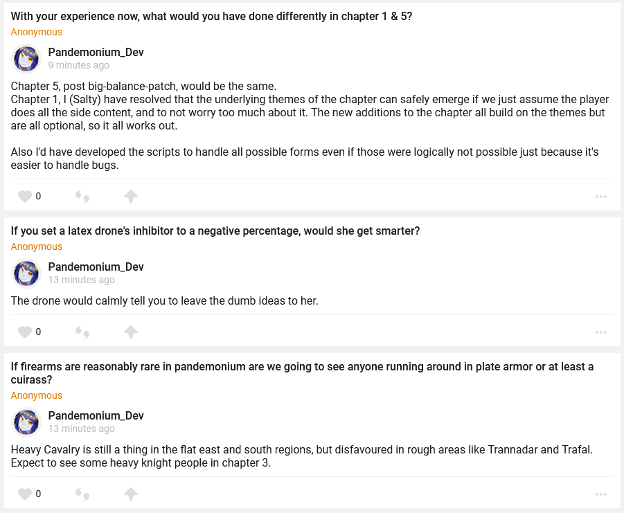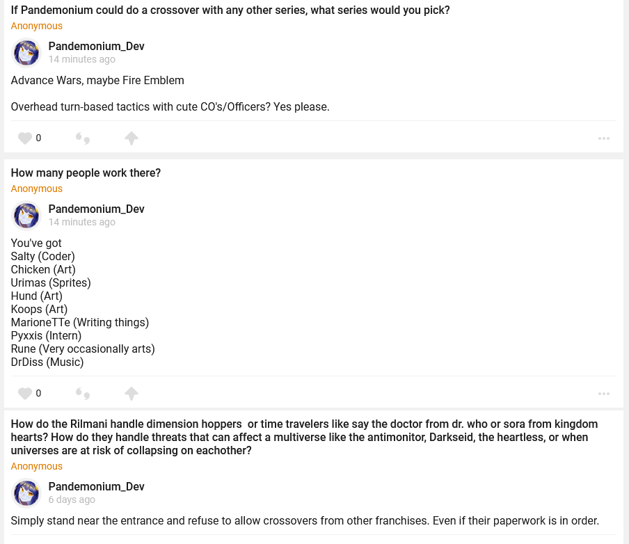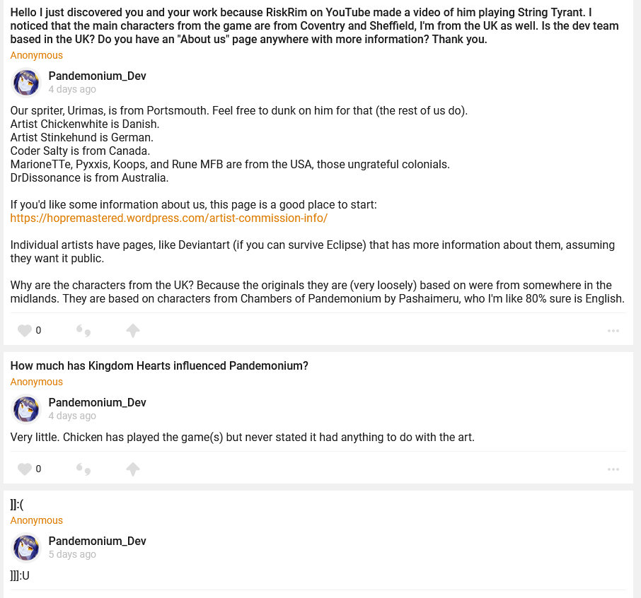 Chicken has finished that emergency concept art I needed done and patrons get to see it today! Urimas is spriting, Hund is doing overlays, and Koops is petting her cats.