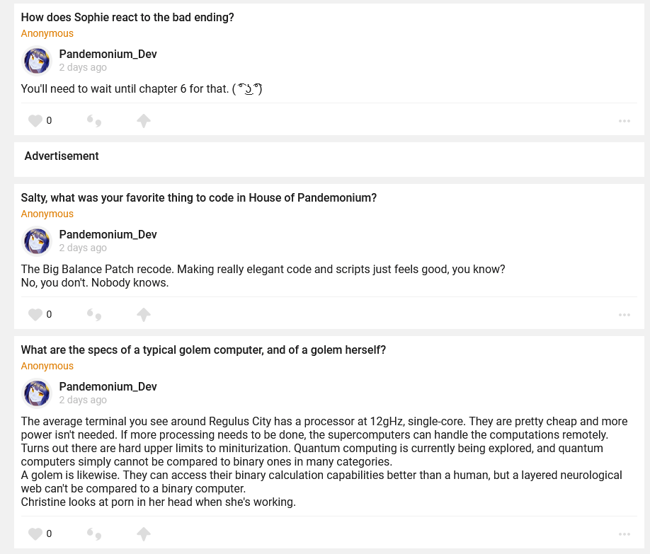 Urimas’ computer blew up and is in the shop for fixin’, so he’s out until at least Thursday. Stinkehund is working on chapter 5’s area transitions.
