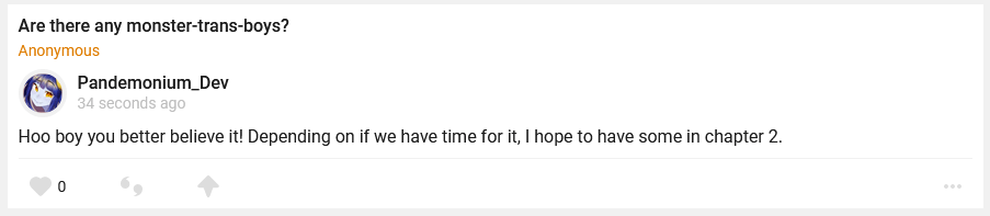 That’s right, as part of the Save Sinpai Stream, I got a 10$ commission from Aaaac, world-famous author of Monsters of the Forest. It’s a story featuring Sanya and Izuna from chapter 2!