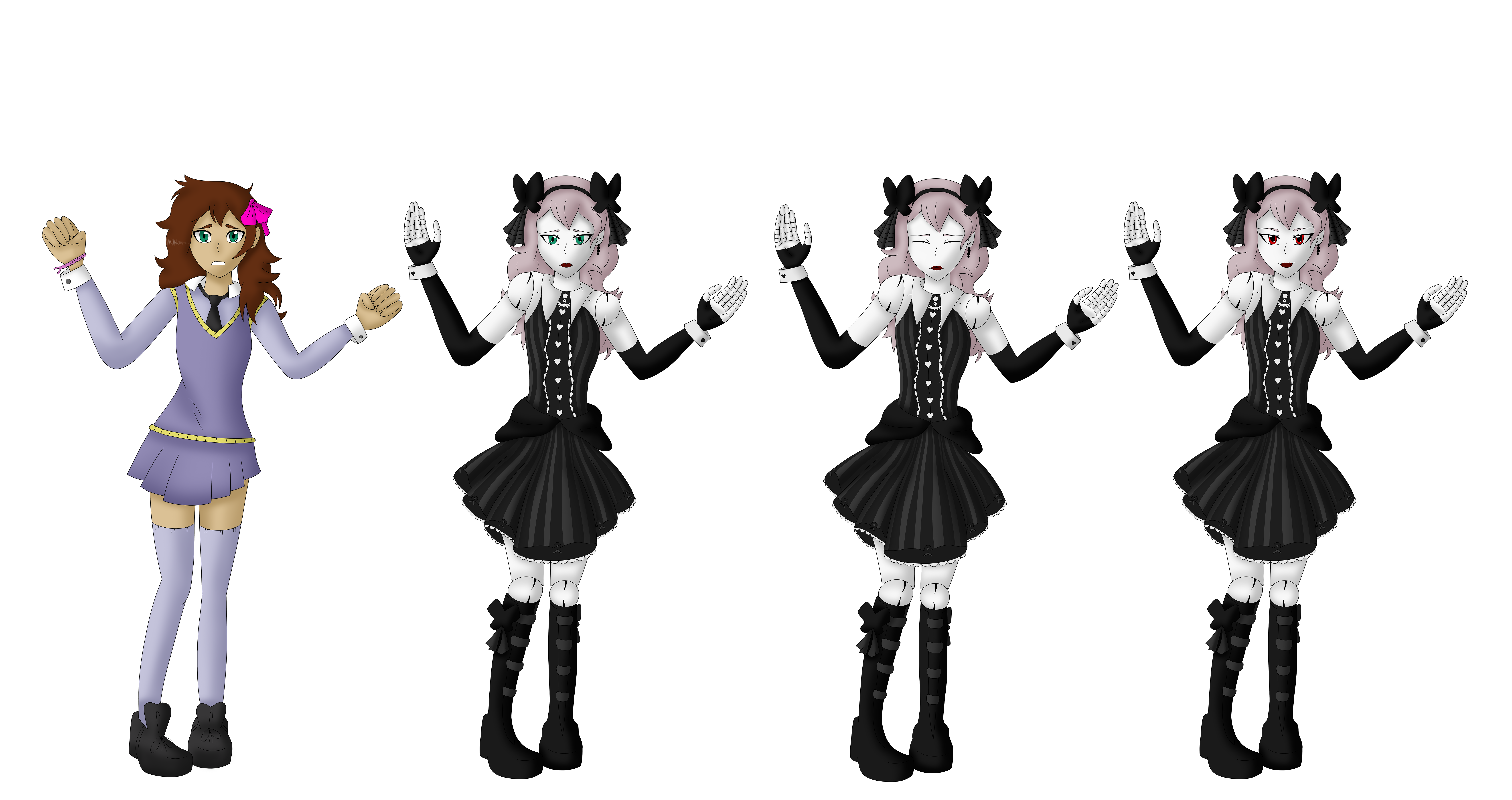 I will be putting up some information posts on the game soon, but for now: It’s a game about some teenagers getting trapped in a mansion filled with living doll girls. Their goal is to escape, and if they don’t… well, I work on transformation games, you figure it out.