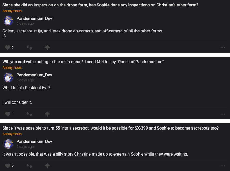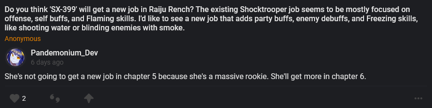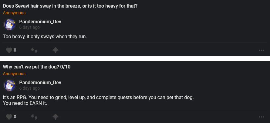 There have been some shakeups in the studio! Giga has left to pursue other major projects, we wish him well. Wispy is no longer working on RoP as an artist but is staying on as a programmer, he’s also got lots of big art projects to deal with. He may be the art lead in future projects, who knows!