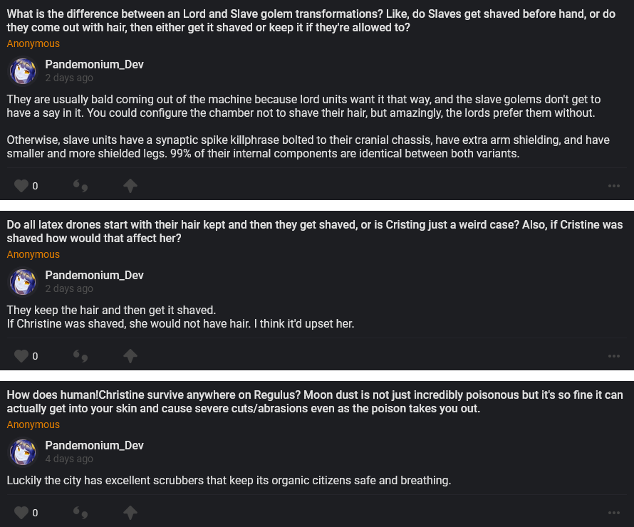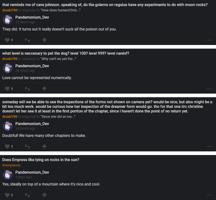 This means Koops has been promoted to art director, having the time to spend on the job. We’re also going to be hunting around for a new talk-sprite artist to help fill in the gaps. This means I don’t have any idea when or how chapter 2 is going to progress, it depends on us finding artists up to the task. We’re still going to move forward just not at the pace I had hoped.